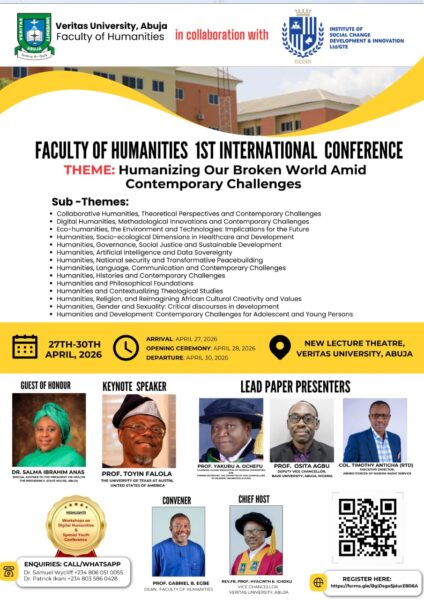 It is a great honor to have given the Keynote Address at the Faculty of Humanities First International Conference, Veritas University, Abuja, on April 28, 2026. I spoke about the theme of dignity in the context of a world that is in a deep crisis. I congratulate Veritas for holding a successful conference. Dr. Samuel Wycliff, the contact person, is a highly committed scholar.